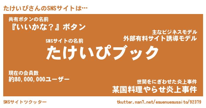 | 男性向けラノベタイトル風あだ名 | 『タケイピアートオンライン』 |