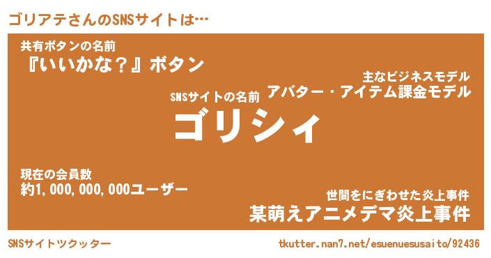 | 意味不明あだ名 | 『ペロリンゴリアテ』『永久保存ゴリアテ』 |