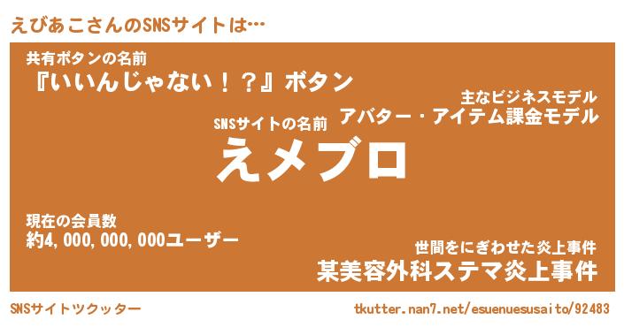 | 欧米人風あだ名 | 『マイケルえびあこ』『ウサインえびあこ』 |