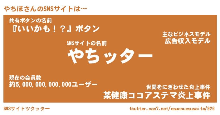 | ヘコむあだ名 | 『やちにゅー』『なまこ酢』『やちお』 |