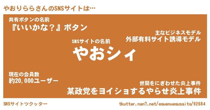 | ファンタジー風あだ名 | 『ヤオフェル』『エターナルヤオリララー』 |