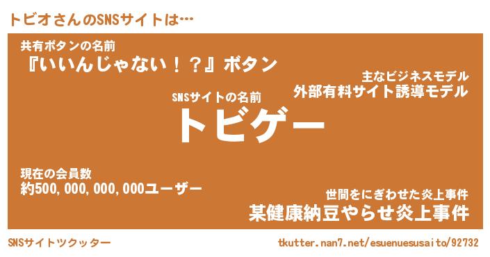 | ポケモン風あだ名 | 『トビチュウ』『トビオダネ』 |