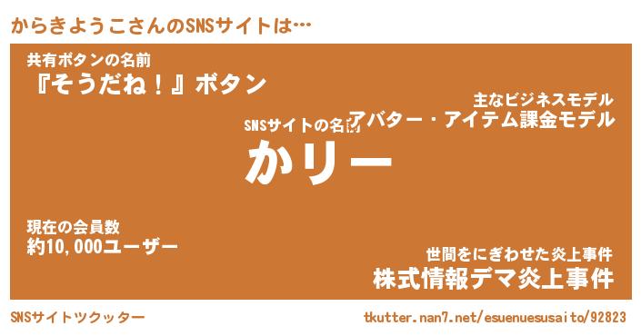 | 胡散臭い通販商品みたいなあだ名 | 『モテモテ間違いなし霊験あらたかなお札…その名も「からきようこ」』 |