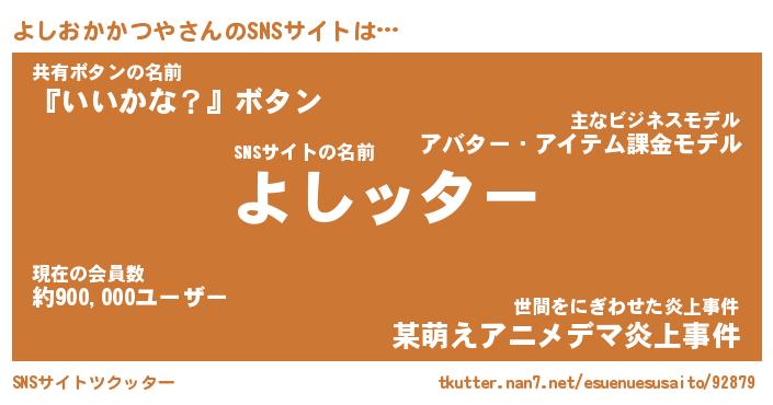 | 肩書あだ名 | 『よしおかかつや店長』 |