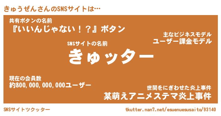 | 男性向けラノベタイトル風あだ名 | 『キュウゼンアートオンライン』 |