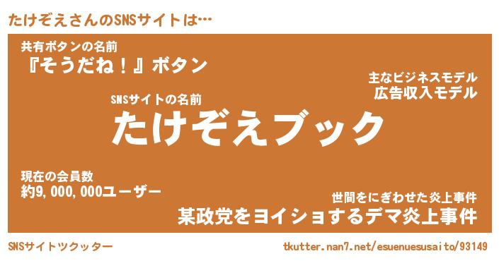 | 肩書あだ名 | 『たけぞえ店長』『たけぞえ総理大臣』 |