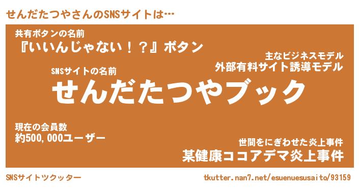 | 男性向けラノベタイトル風あだ名 | 『センダタツヤアートオンライン』 |