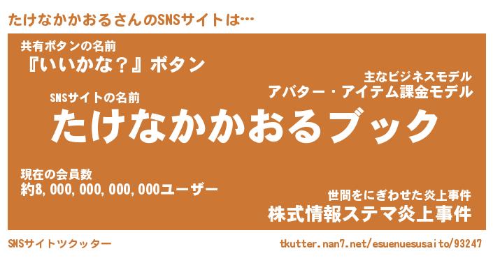 | 胡散臭い通販商品みたいなあだ名 | 『億万長者になれるブレスレット…その名も「たけなかかおる」』 |