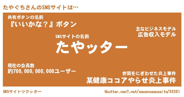 | 肩書あだ名 | 『たやぐち店長』『たやぐち総理大臣』 |