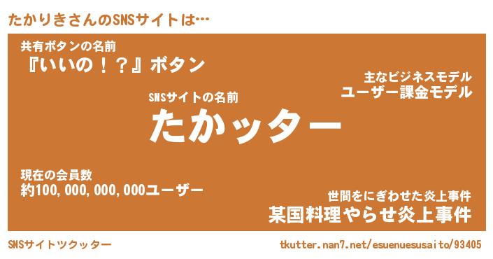 | 意味不明あだ名 | 『ペロリンたかりき』『永久保存たかりき』 |