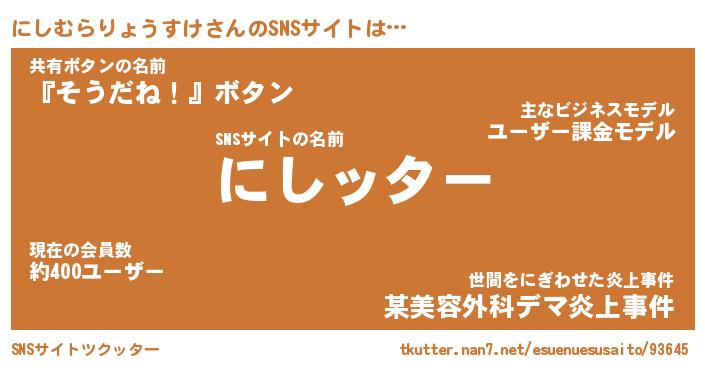 | 肩書あだ名 | 『にしむらりょうすけ店長』 |