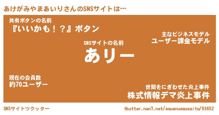 | 肩書あだ名 | 『あけがみやまあいりCEO』 |