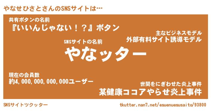 | 伝説のあだ名 | 『封印されし傭兵やなせひさと』 |