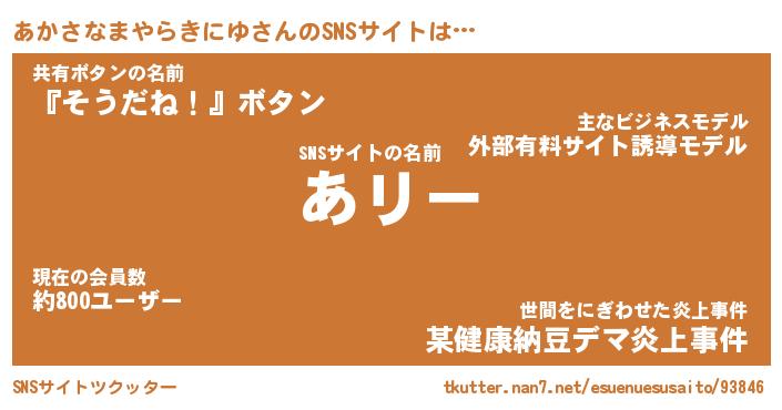 | ツイッター | あかさなまやらきにゆさんのツイッターID『masyumaro_nyan』 |