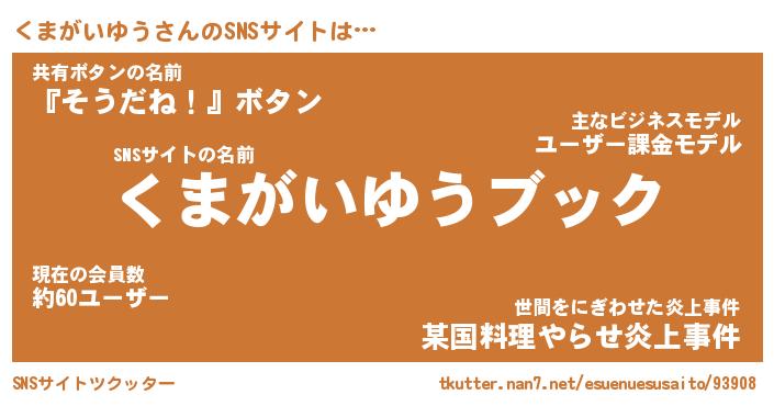 | 肩書あだ名 | 『くまがいゆう社長』『くまがいゆう班長』 |