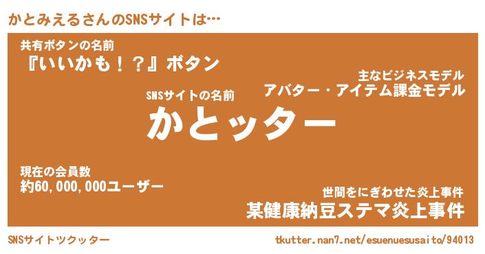 | ヘコむあだ名 | 『かとっふぃ~』『なまこ酢』 |