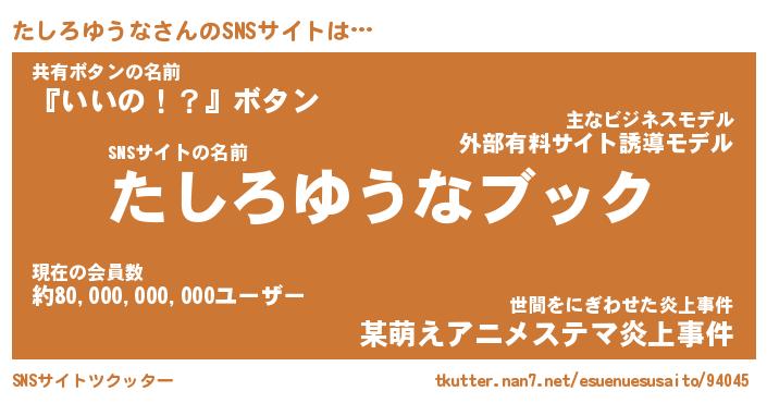 | ヒーロー風カッコイイあだ名 | 『スーパータシロユウナ』『天弓騎士タシ』 |