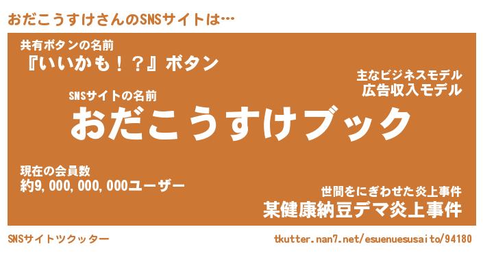 | 男性向けラノベタイトル風あだ名 | 『オダコウスケアートオンライン』 |