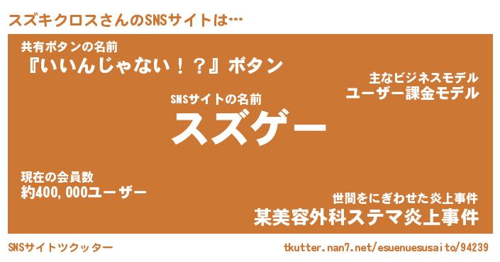 | 肩書あだ名 | 『スズキクロスCEO』『スズキクロス大統領』 |