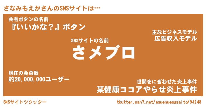 | ツイッター | さなみもえかさんのツイッターID『katatsumuri_idle』 |