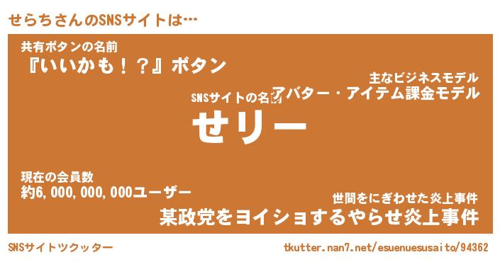 | 意味不明あだ名 | 『ペロリンせらち』『せらちフォーエバー』 |