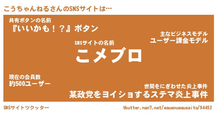 | ツイッター | こうちゃんねるさんのツイッターID『dendenmushi_nyan』 |