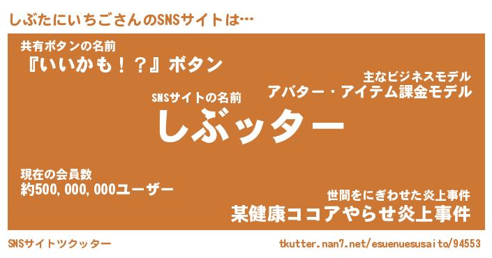 | 胡散臭い通販商品みたいなあだ名 | 『億万長者になれるブレスレット…その名も「しぶたにいちご」』 |
