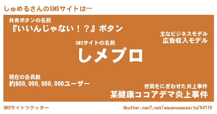 | 意味不明あだ名 | 『ペロリンしゅめる』『永久保存しゅめる』 |