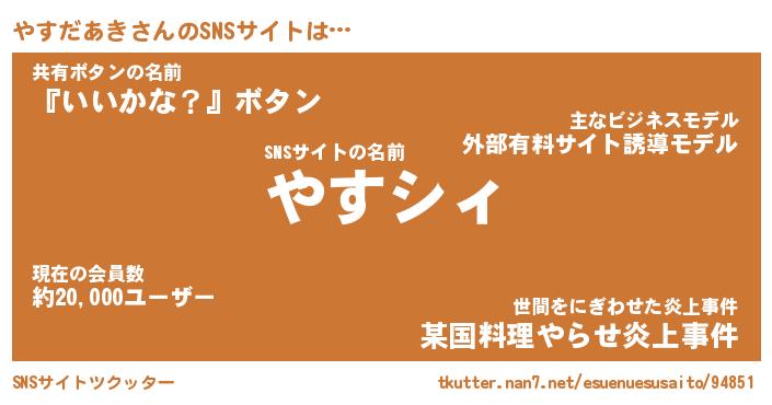 ファンタジー風あだ名 | 『ヤスフェル』『エターナルヤスダアキー』 |