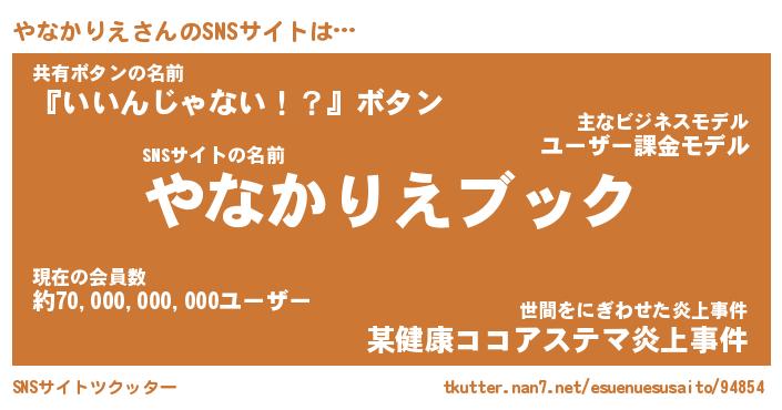 | 肩書あだ名 | 『やなかりえ御曹司』『やなかりえ大統領』 |