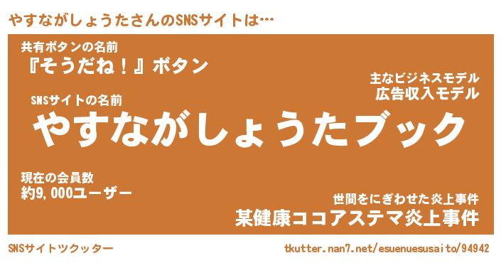 | ヘコむあだ名 | 『やすふぇ~』『なまこ酢』『やすお』 |