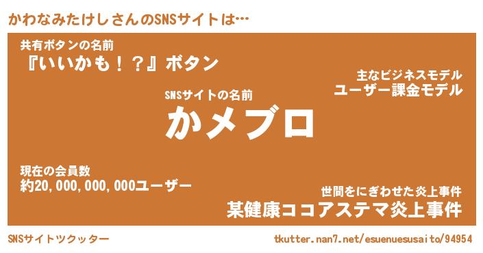 | ヒーロー風カッコイイあだ名 | 『スーパーカワナミタケシ』 |