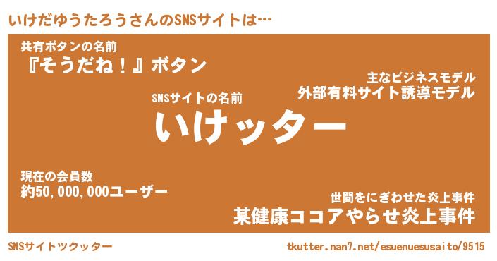 | 肩書あだ名 | 『いけだゆうたろう御曹司』 |