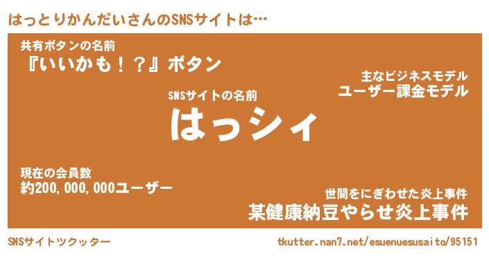 | 胡散臭い通販商品みたいなあだ名 | 『必ず成功するブレスレット…その名も「はっとりかんだい」』 |