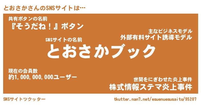 | 肩書あだ名 | 『とおさか社長』『とおさか国家主席』 |