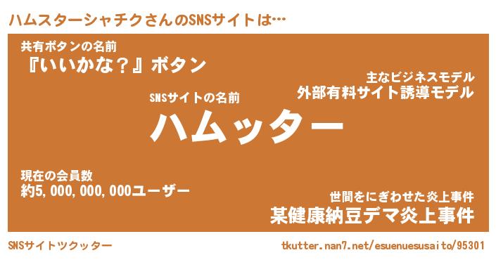 | 欧米人風あだ名 | 『マイケルハムスターシャチク』 |