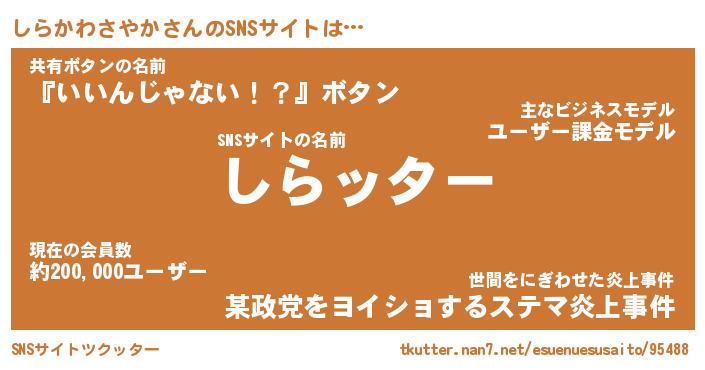 | 胡散臭い通販商品みたいなあだ名 | 『億万長者になれる霊験あらたかなお札…その名も「しらかわさやか」』 |
