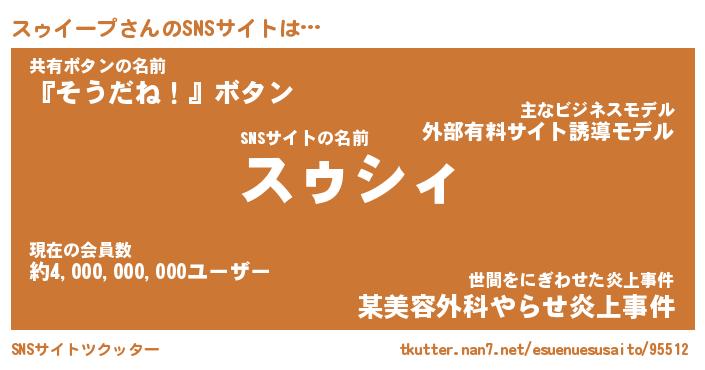 | 男性向けラノベタイトル風あだ名 | 『スゥイープの憂鬱』 |