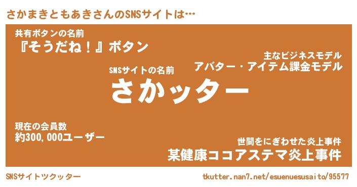 | 肩書あだ名 | 『さかまきともあき社長』 |