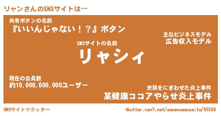 | 男性向けラノベタイトル風あだ名 | 『リャンの憂鬱』 |