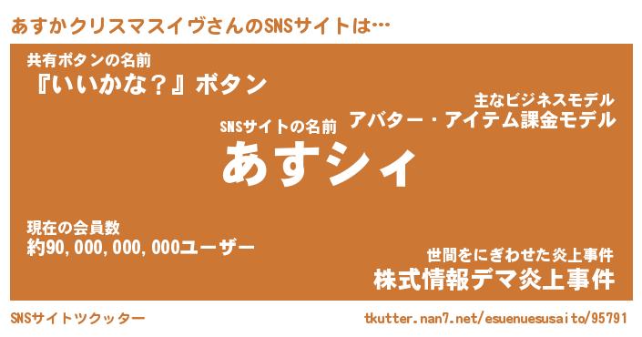 | 肩書あだ名 | 『あすかクリスマスイヴ店長』 |