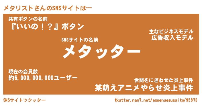 | ファンタジー風あだ名 | 『メタフェル』『エターナルメタリストー』 |