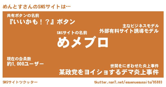 | ツイッター | めんとすさんのツイッターID『katatsumuri_nyan』 |