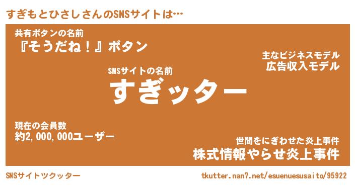 | 胡散臭い通販商品みたいなあだ名 | 『億万長者になれるブレスレット…その名も「すぎもとひさし」』 |