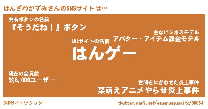 | 男性向けラノベタイトル風あだ名 | 『はんざわかずみの憂鬱』 |