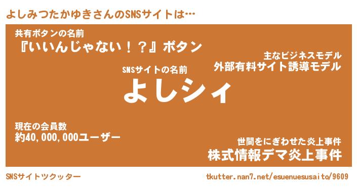 | 肩書あだ名 | 『よしみつたかゆきCEO』 |