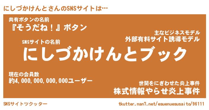 | ポケモン風あだ名 | 『ニシチュウ』『ニシヅダネ』 |