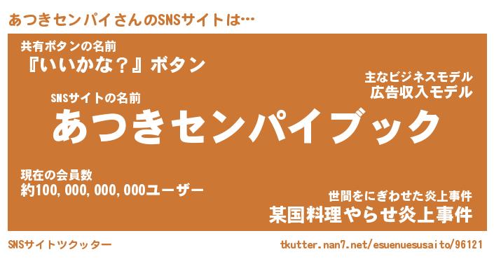 | 伝説のあだ名 | 『封印されし竜騎士あつきセンパイ』 |