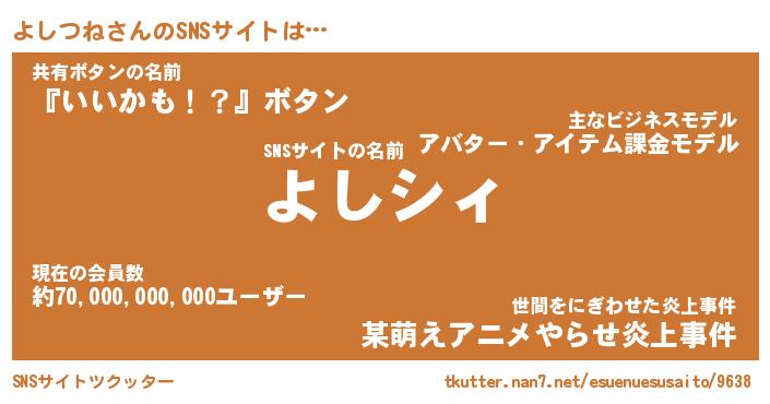 | ファンタジー風あだ名 | 『ヨシフェル』『エターナルヨシツネー』 |