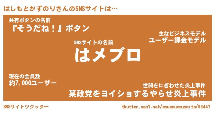 | 肩書あだ名 | 『はしもとかずのり御曹司』 |